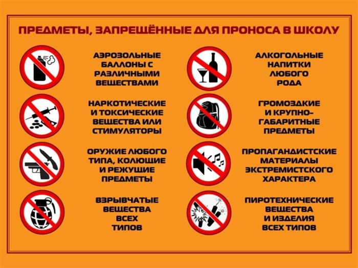 Перечень предметов, веществ и устройств, запрещенных к проносу в здание и на территорию школы